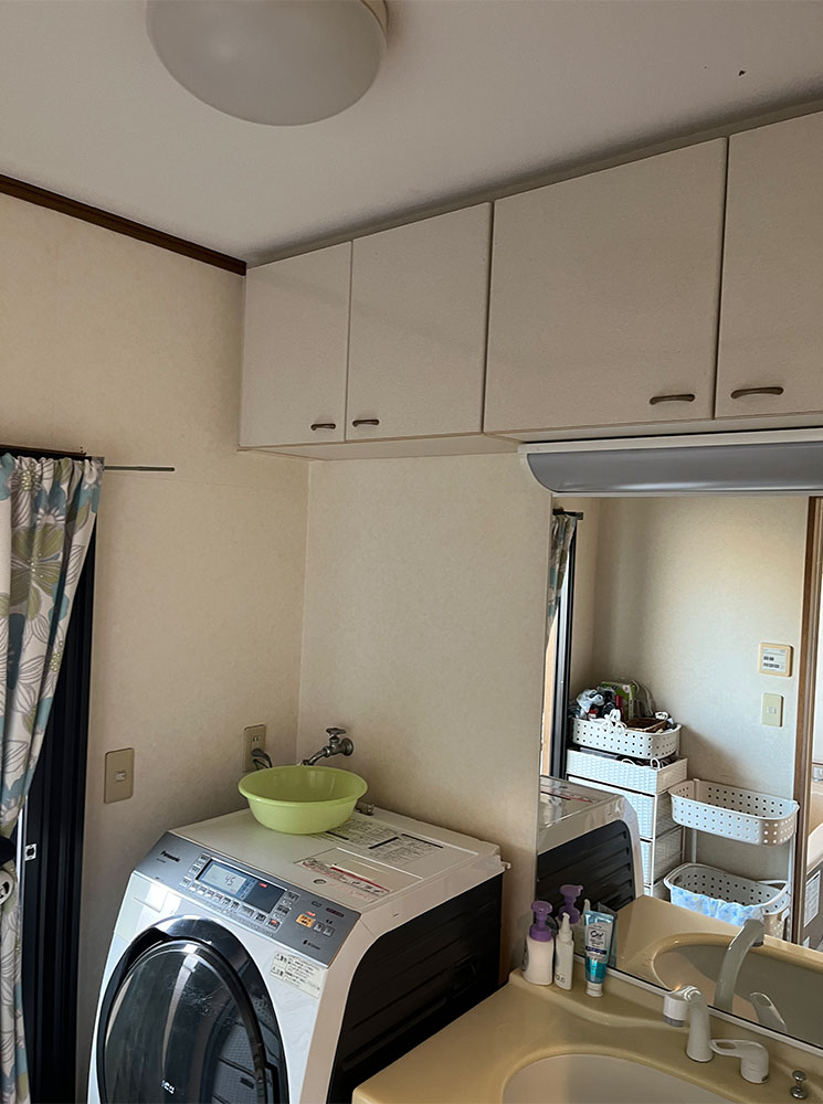 洗面化粧台や内装に経年劣化が見られる状態でした。